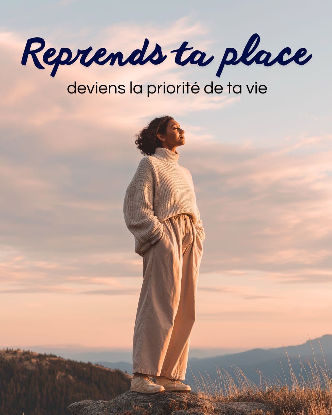 « Reprends ta place, deviens la priorité de ta vie » est une formation en ligne pensée pour celles et ceux qui se sentent souvent en second plan : charge mentale, émotions qui débordent, difficulté à dire non, culpabilité dès qu’on se choisit.